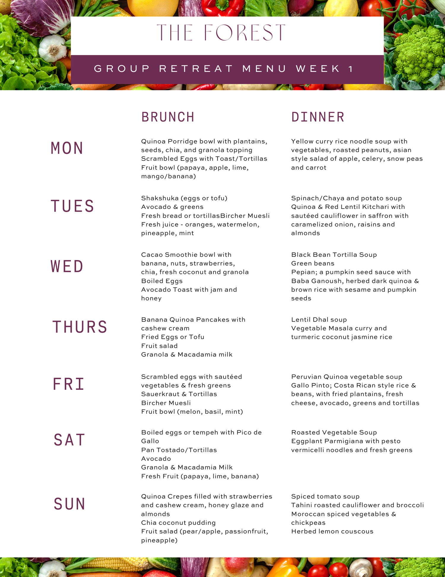 - 2 Daily Vegetarian/Vegan Meals (sample menu)